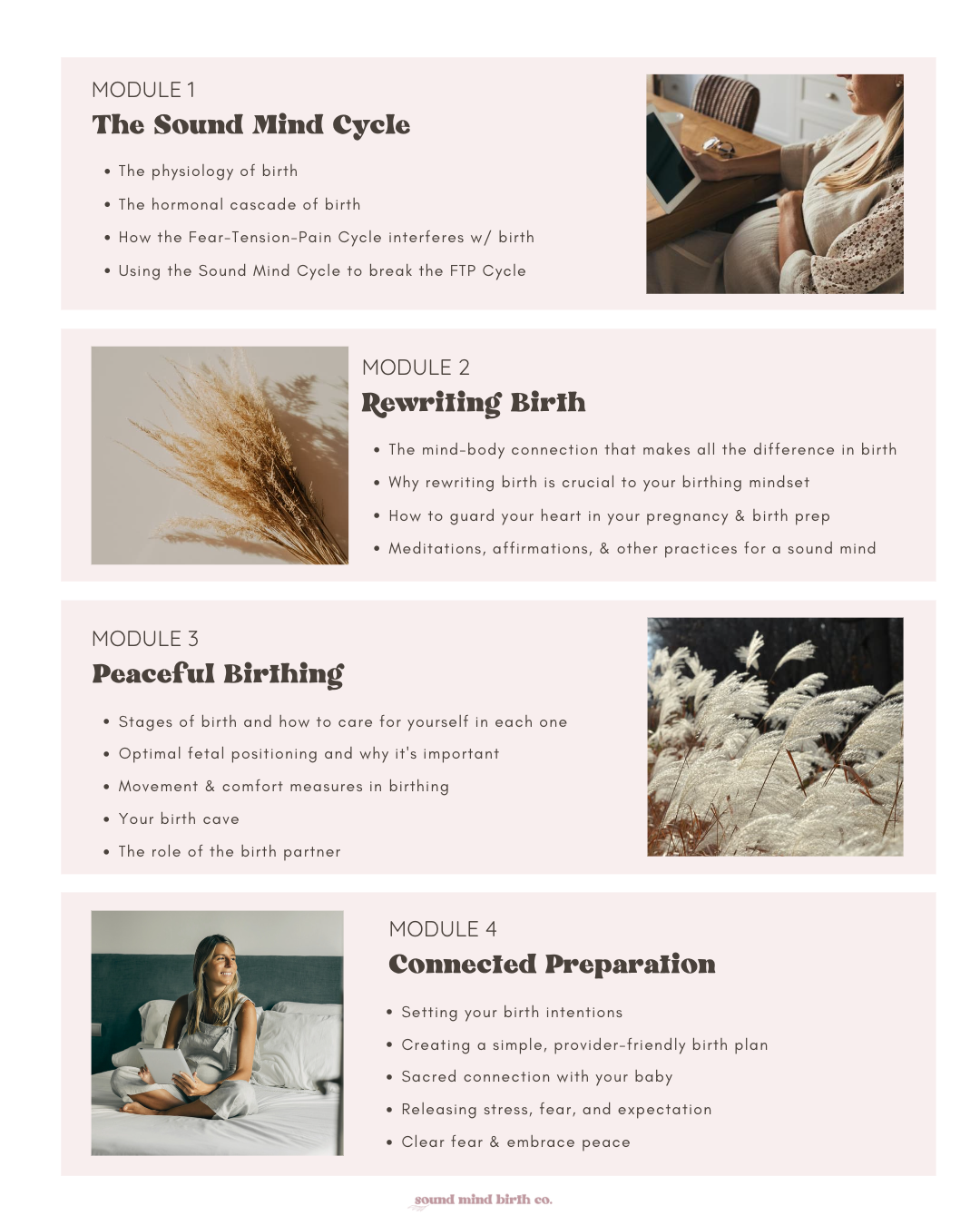 "Ashley has such a calming, caring, loving personality and she is the perfect person to teach peaceful birthing. The videos had great information. I learned so much and especially loved the affirmations and guided meditations. As my birth doula she brought comfort, positivity, strength, peace, and knowledge to my birth. My husband and I were supported through my entire labor."